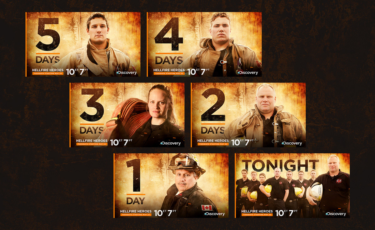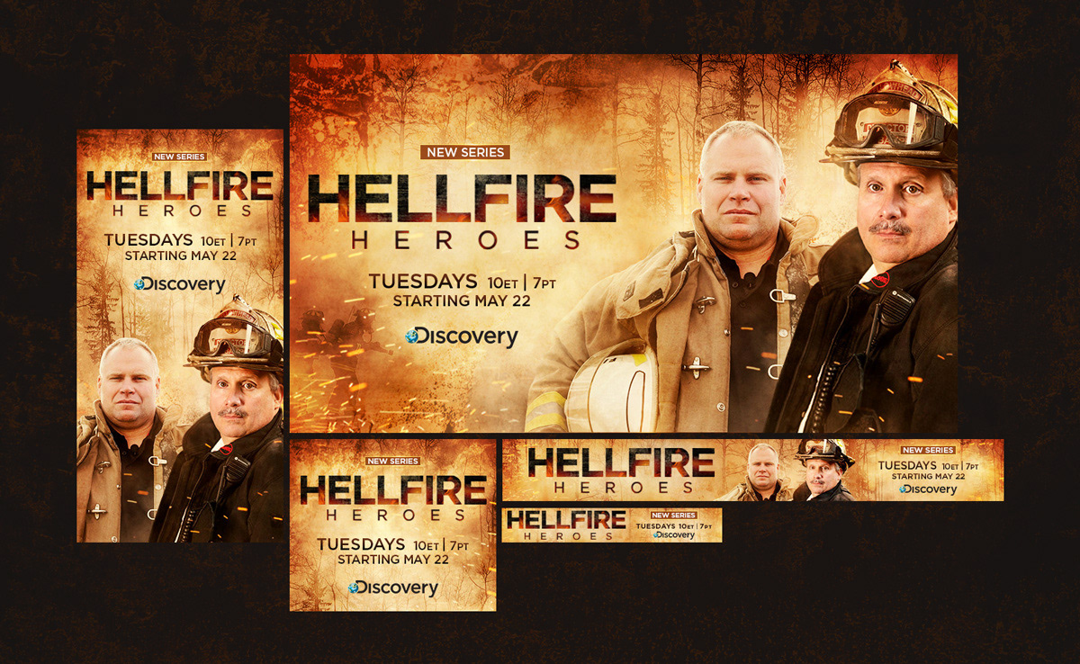 The keyart and digital campaign elements I designed for Discovery channel's new show Hellfire Heroes. The campaign elements include showpage graphic for Discovery's website, web ads, Discovery GO artworks, and social media graphics.